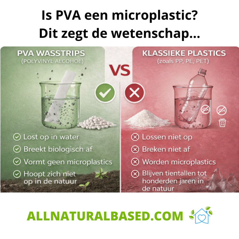 In wasstrips – die van ons, maar ook die van andere aanbieders – zit een ingrediënt dat ervoor zorgt dat alle bestanddelen netjes bij elkaar blijven: polyvinylalcohol, meestal afgekort tot PVA.